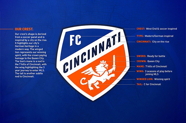 致敬,而其鬃毛的七個(gè)尖角代表了辛辛那提的七座山峰;三羽的翅膀代表了俱樂(lè)部在國(guó)家足球聯(lián)賽的三年歷程,而尾巴是